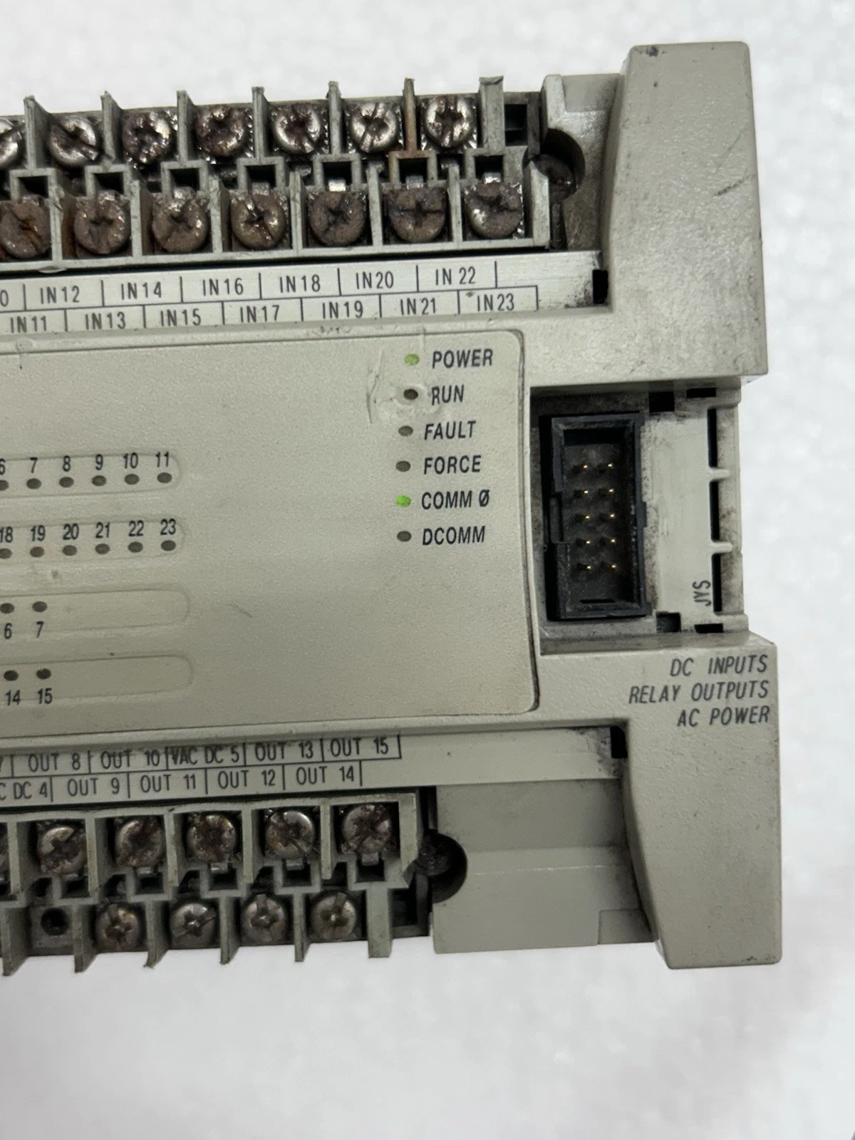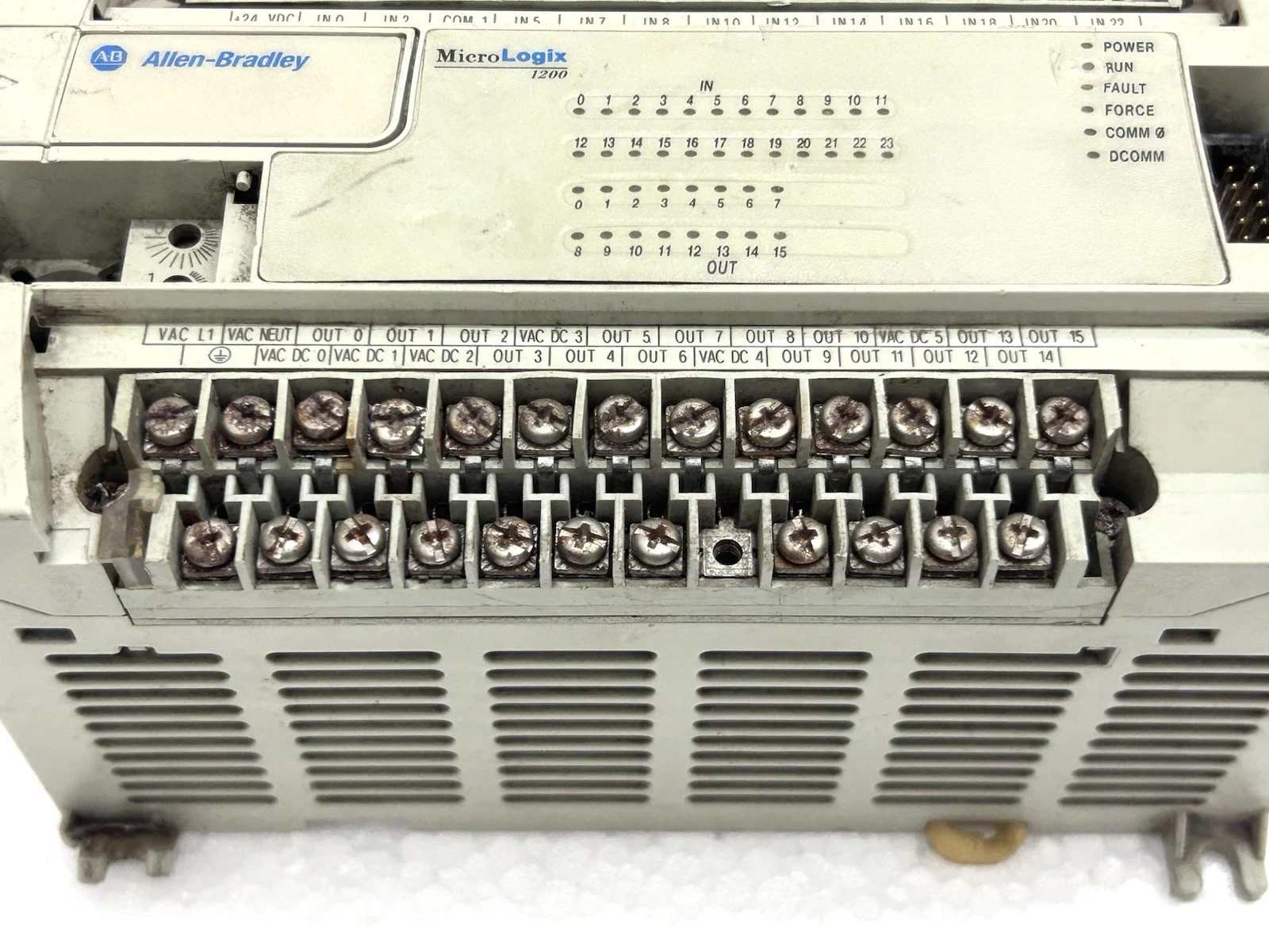- Terminal Integrity: All screw terminals are present and in good condition. The expansion port cover and communication port door are intact.