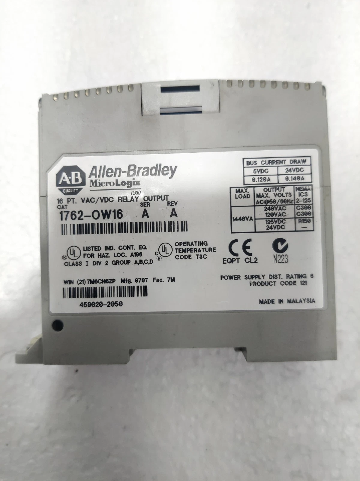 - Functional Status: Used Working. This module has been professionally removed from an operational panel. Each of the 16 relay contacts has been tested for continuity and successful switching under a MicroLogix test environment.