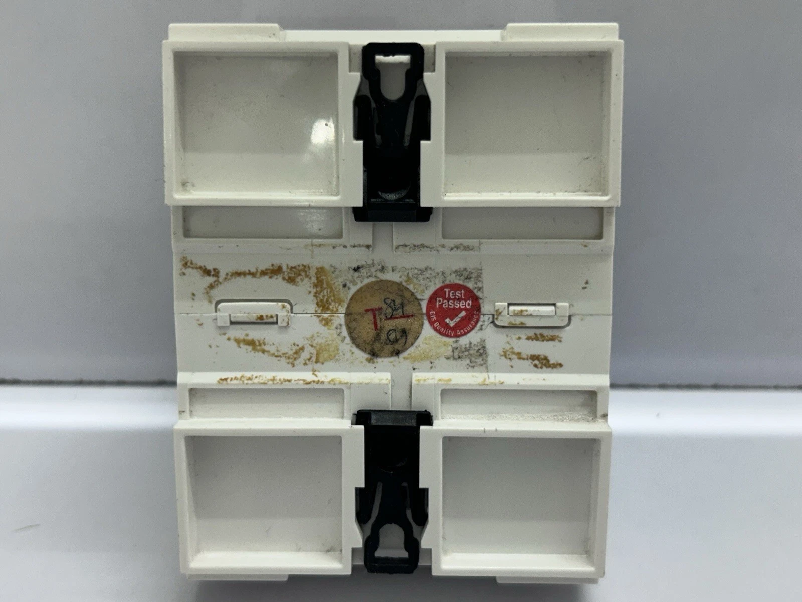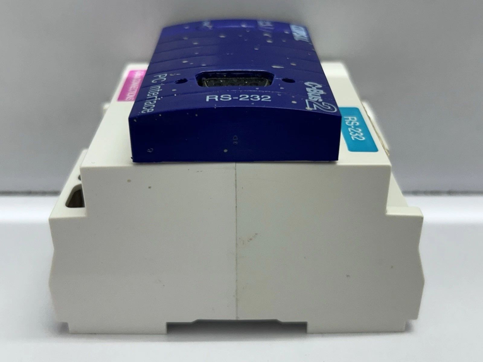 - Physical State: Shows minor cosmetic signs of previous use, such as light scratches on the plastic casing. The DIN rail mounting clip and serial port pins are in excellent condition.