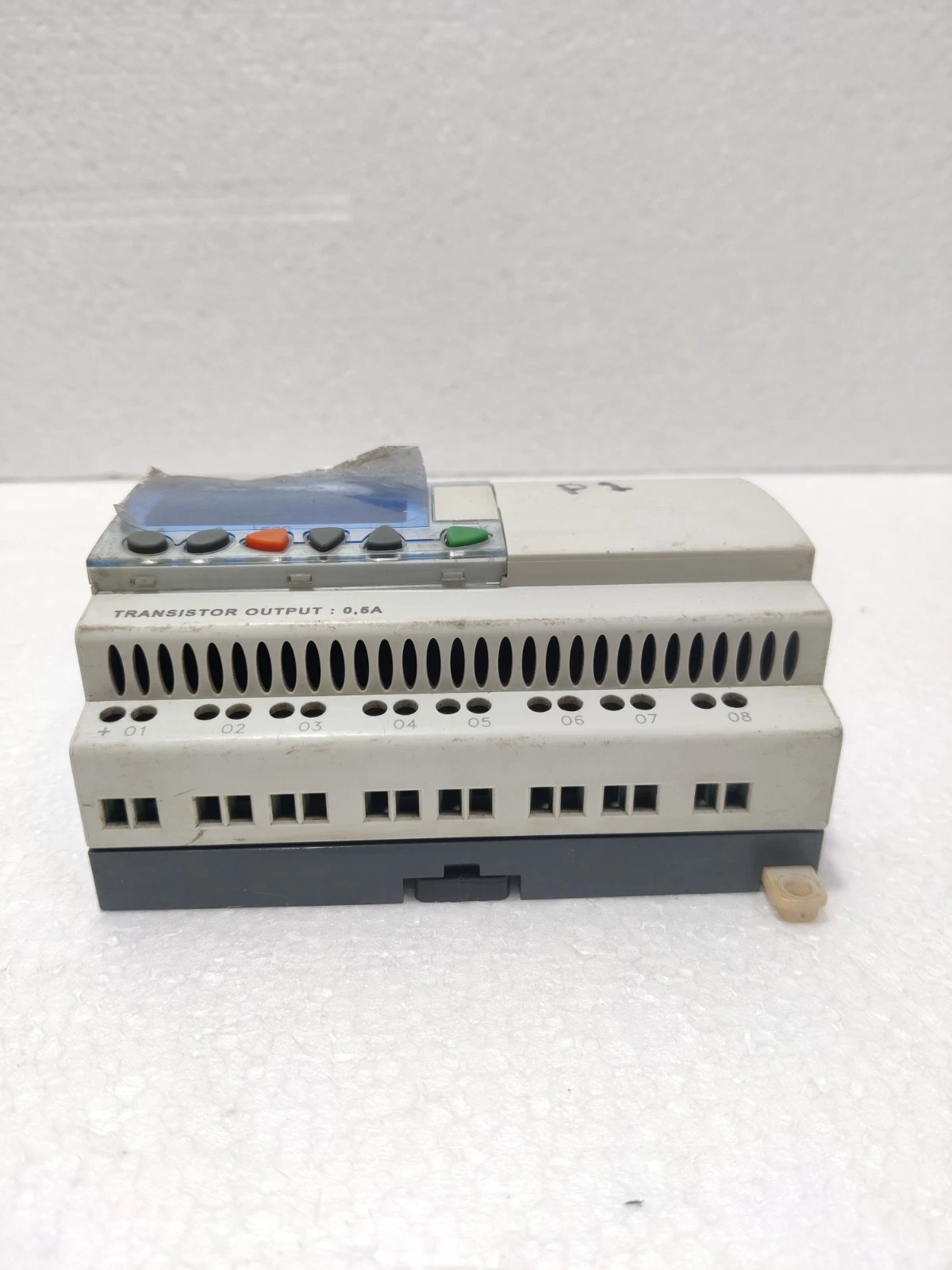 - Physical State: Clean industrial condition. The DIN rail mounting clips are intact, and the screw terminals are in excellent condition. The front-panel display is clear and legible.