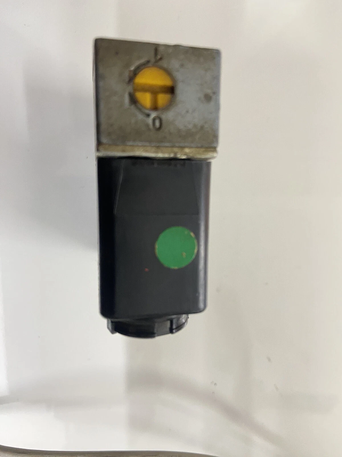 - Physical State: Shows signs of industrial use, including minor surface scuffs or slight discoloration of the metal body. The electrical connector pins and pneumatic threads are clean and in good condition.
