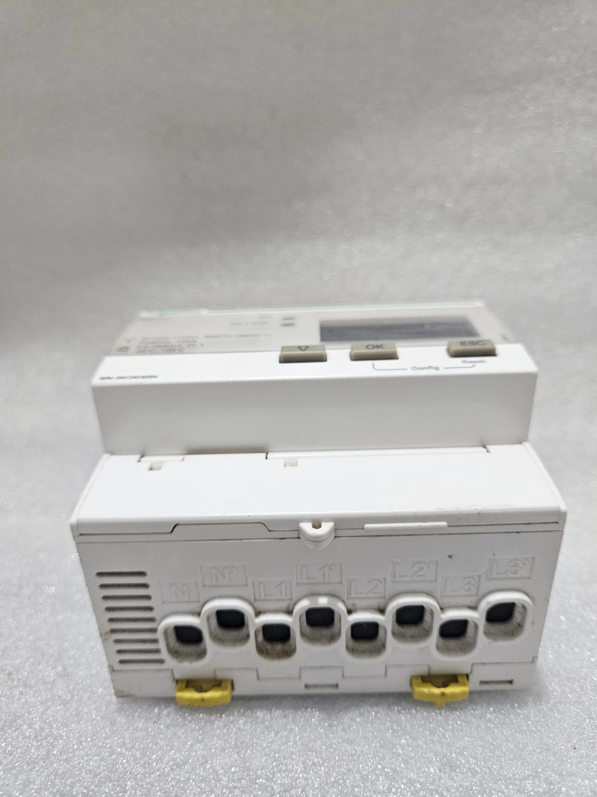 - Physical State: Clean industrial condition. The DIN rail mounting clip is secure. Terminal screws are intact and tested for proper torque.