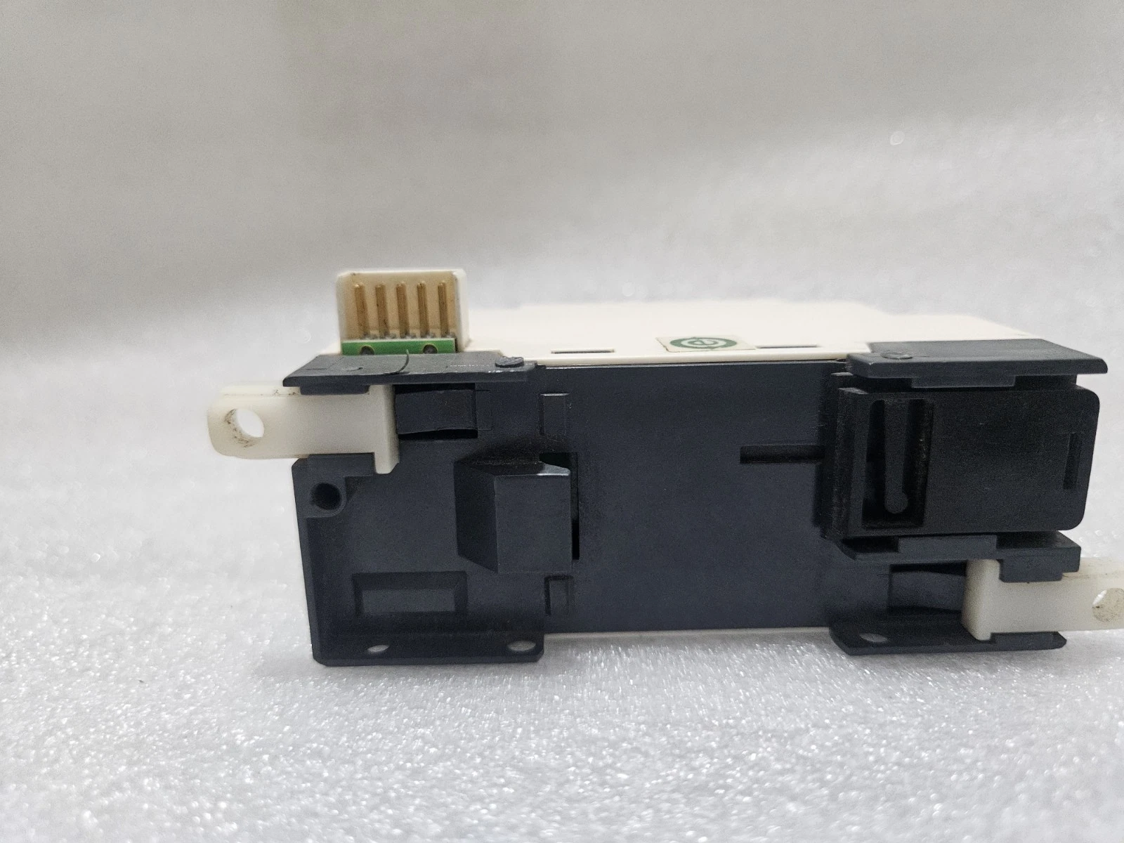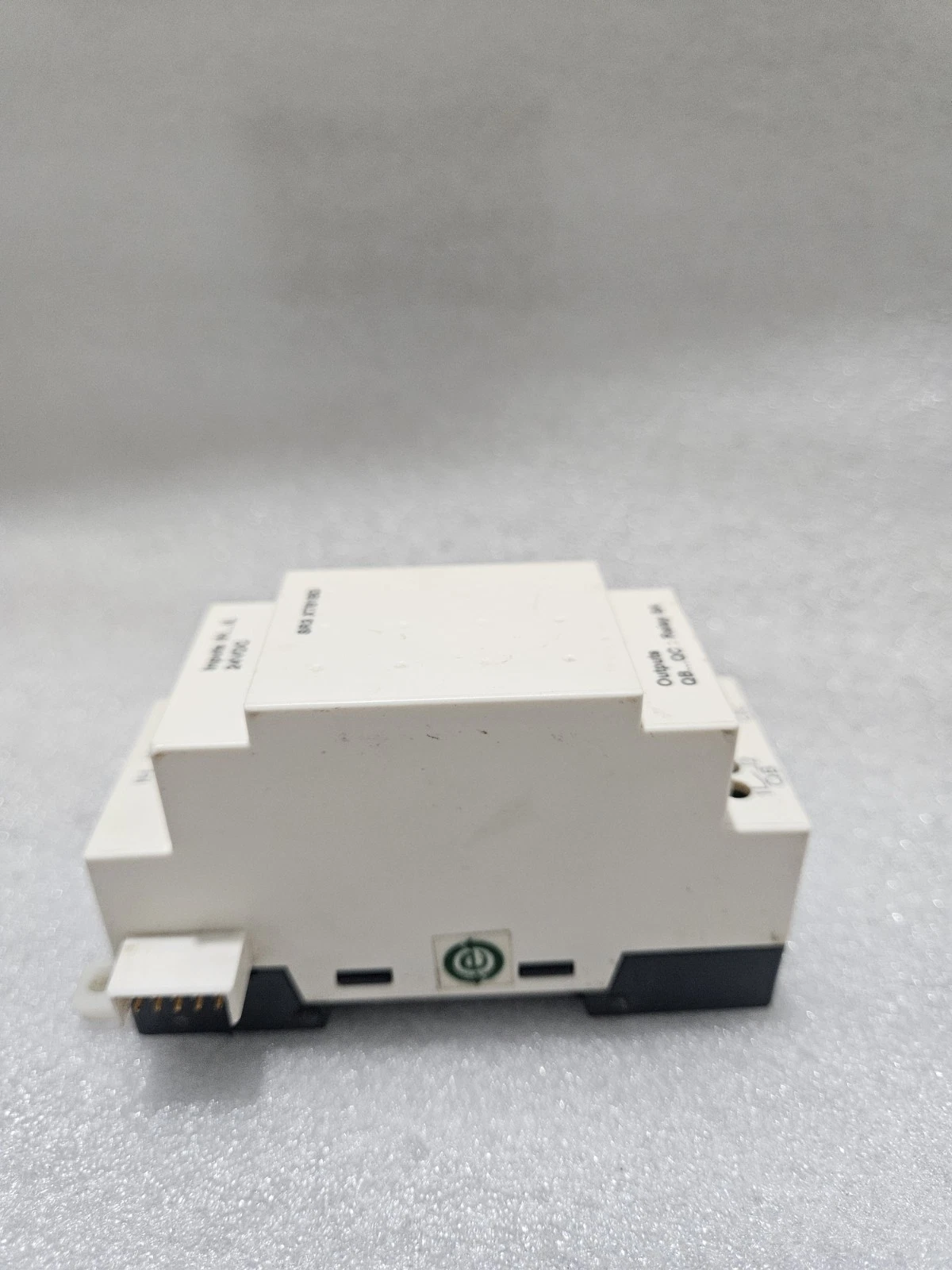 - Physical State: Clean industrial condition. The side-connector pins are straight and clean. The DIN rail mounting clip is fully functional.