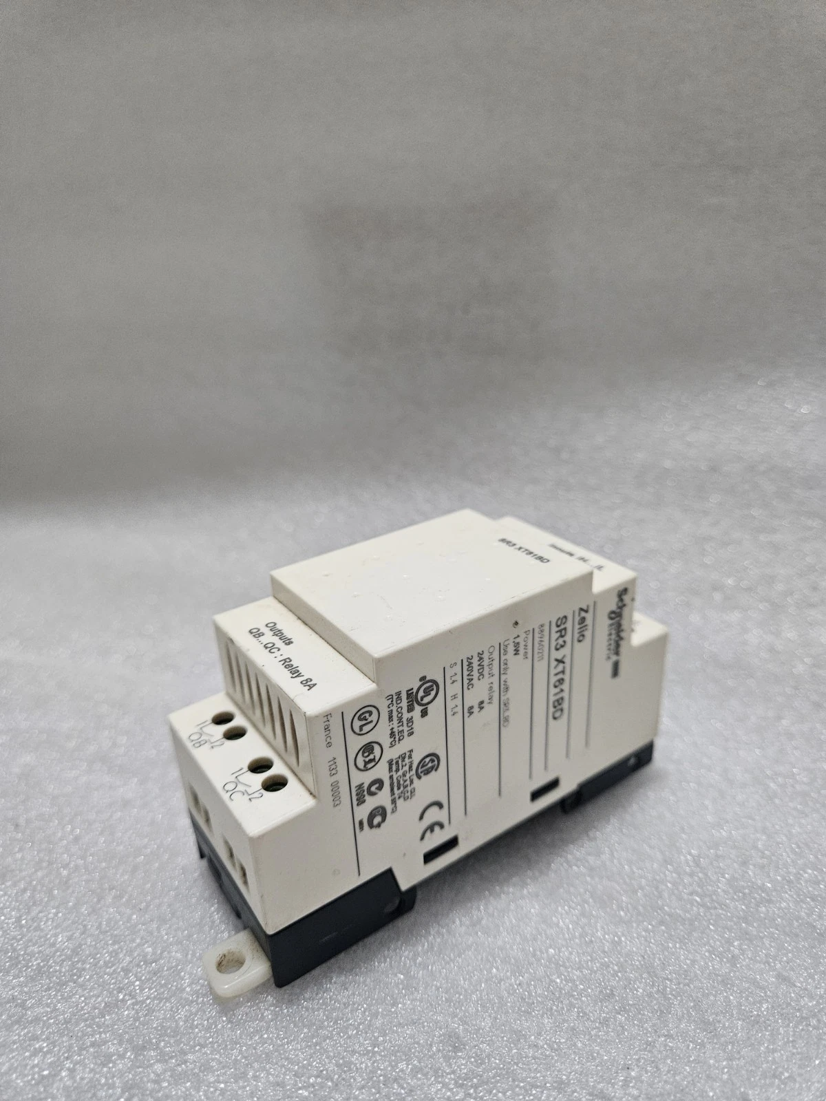 - Functional Status: Used Working. This expansion module has been professionally bench-tested with a Zelio SR3B261BD base controller. All 4 inputs and 2 relay outputs have been verified for stable signal switching.