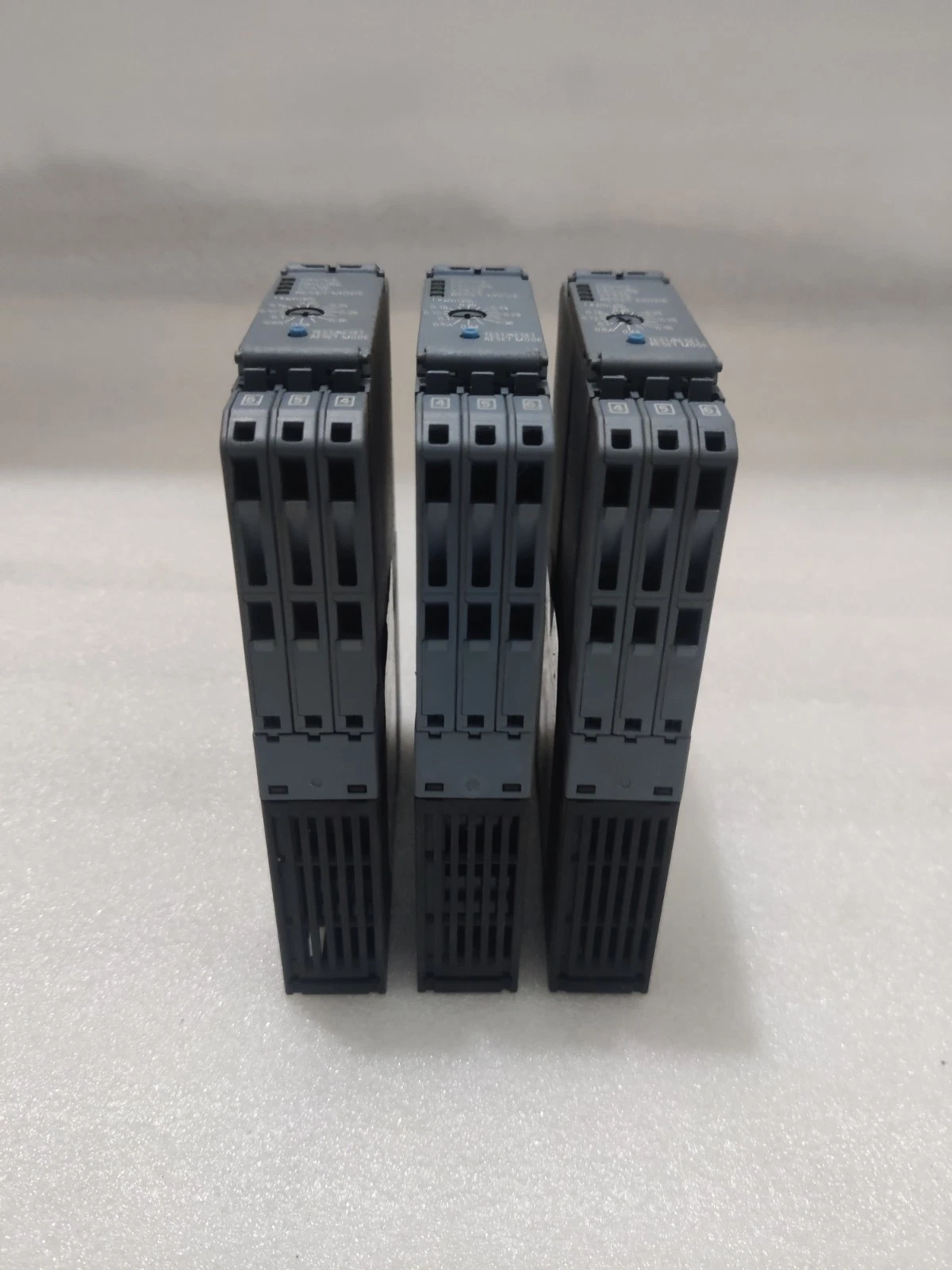 - Physical State: Clean industrial condition. The DIN rail mounting clip is secure, and the screw terminals show no signs of stripping or excessive wear.