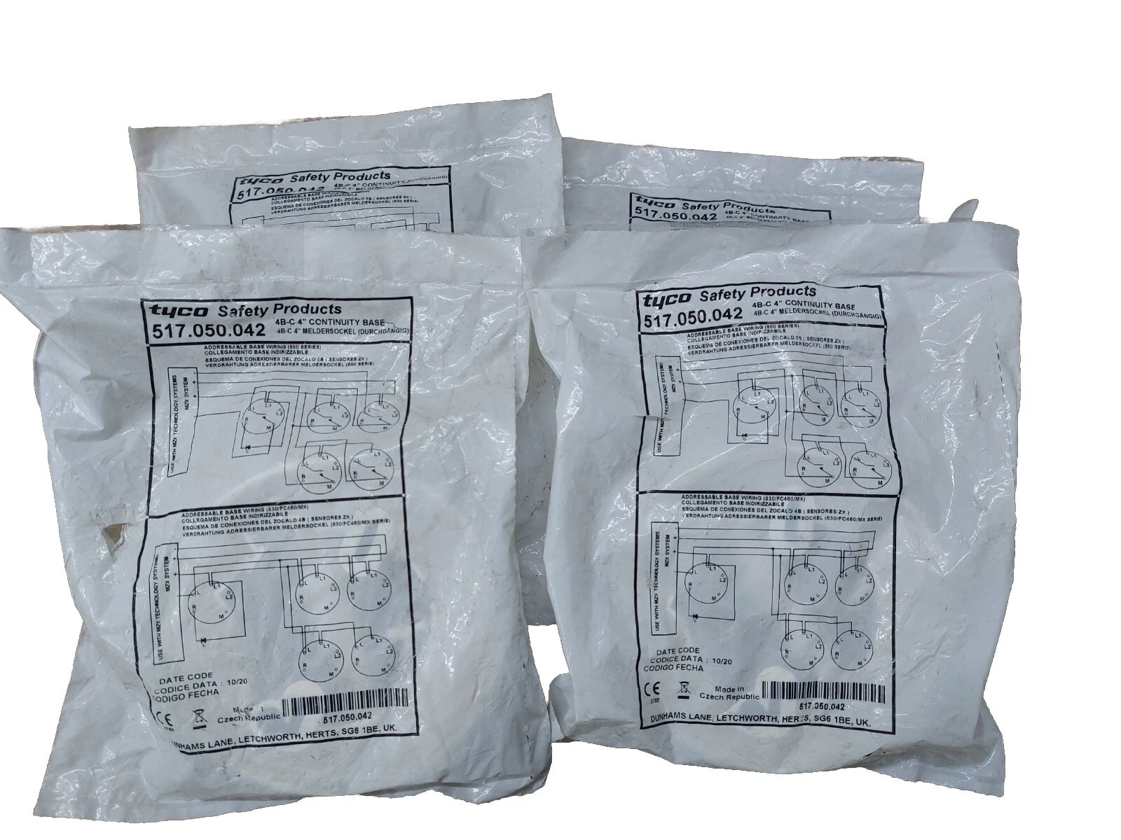The Tyco 4B-C is a high-quality Continuity Base designed for use with Tyco’s range of addressable fire detectors. This base is a critical component for fire safety installations, as it features a continuity spring that allows the detection loop to remain closed even when the detector head is removed. This ensures that the rest of the loop remains operational during maintenance or head replacement. This listing is for a Lot of 4 (Four) units, all in New - Factory Sealed condition, providing a reliable and compliant solution for professional fire alarm system installers.
